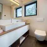 Kuhinjske sadržaje čine mikrovalna pećnica, električno kuhalo, perilica posuđa, mini hladnjak i ploča za kuhanje.
